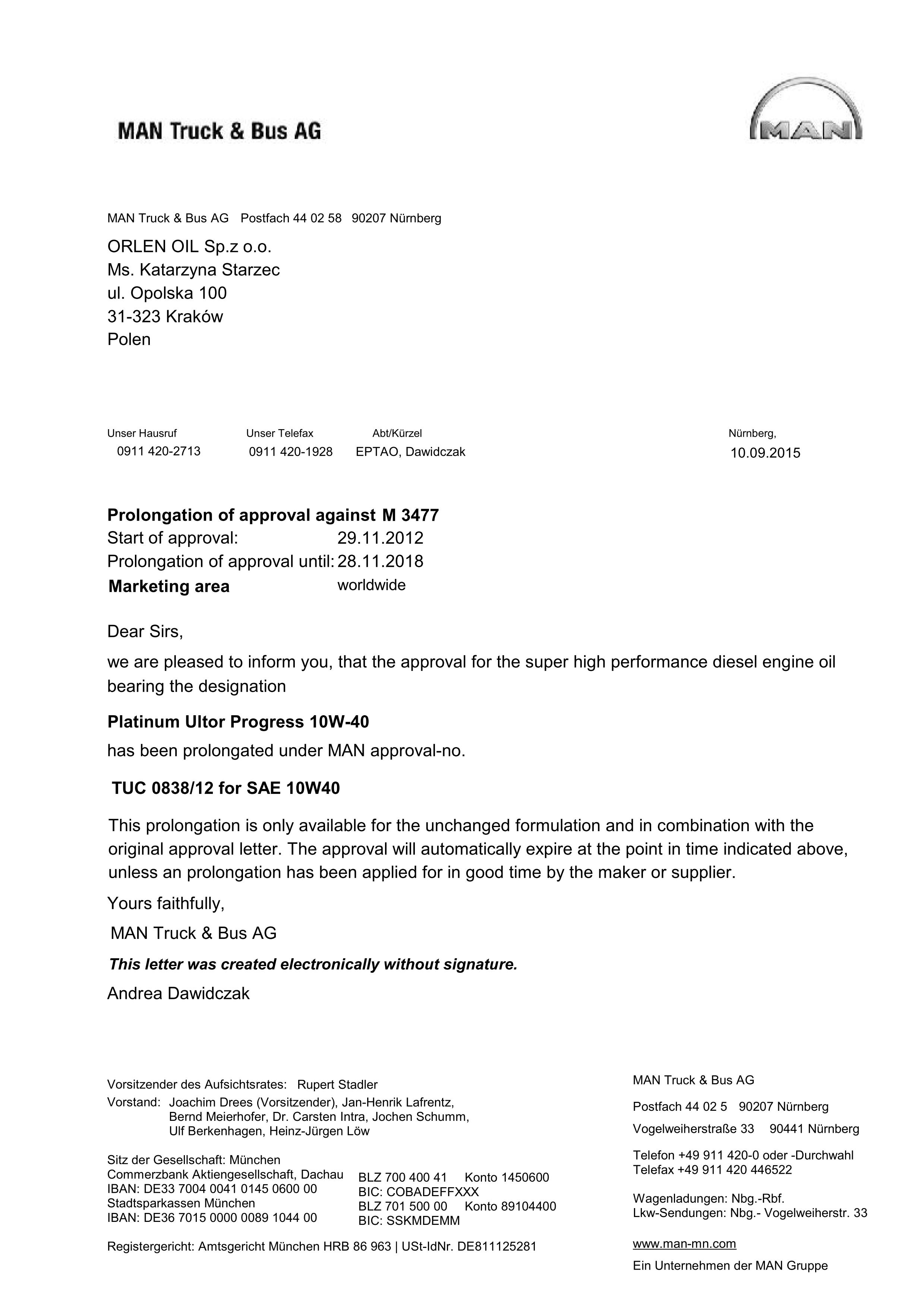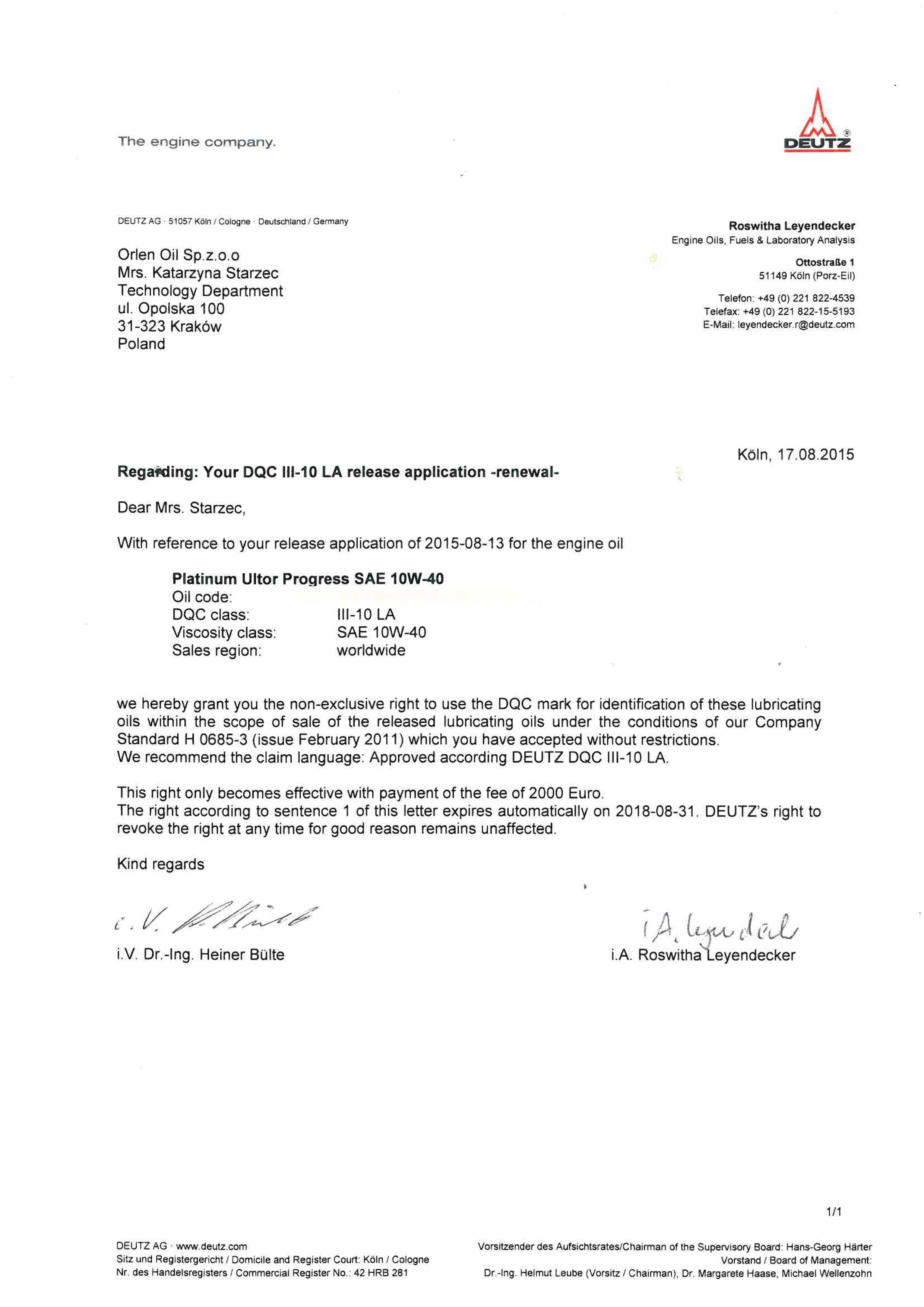 Renault RVI RXD, MTU Type 3.1, MAN 3271-1, Volvo VDS-3, Deutz DQC III-05, DAF, Iveco