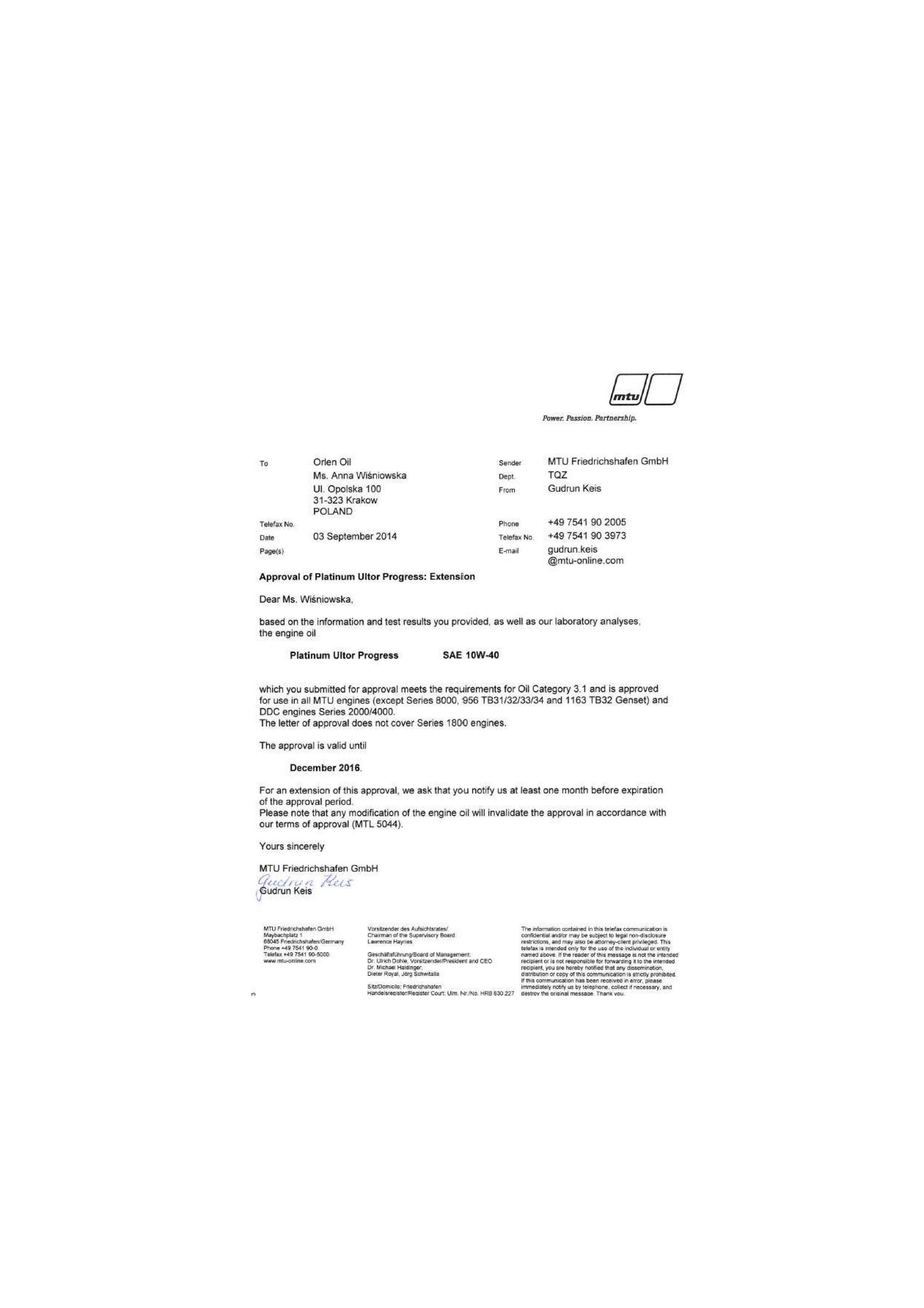 Renault RVI RXD, MTU Type 3.1, MAN 3271-1, Volvo VDS-3, Deutz DQC III-05, DAF, Iveco